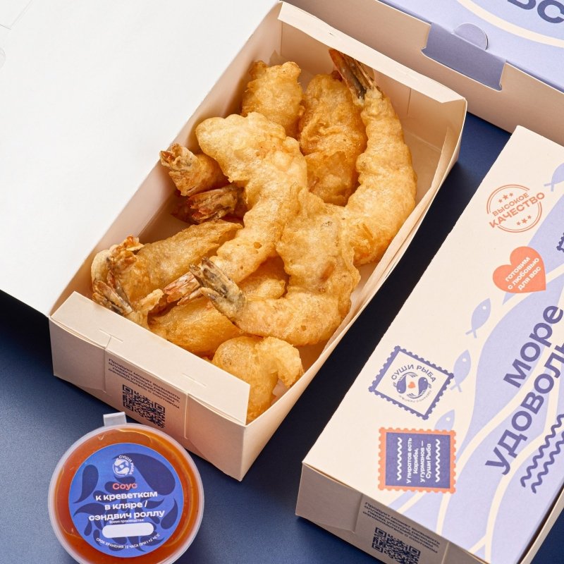 Креветки в пикантном кляре с соусом Манго-Чили.
